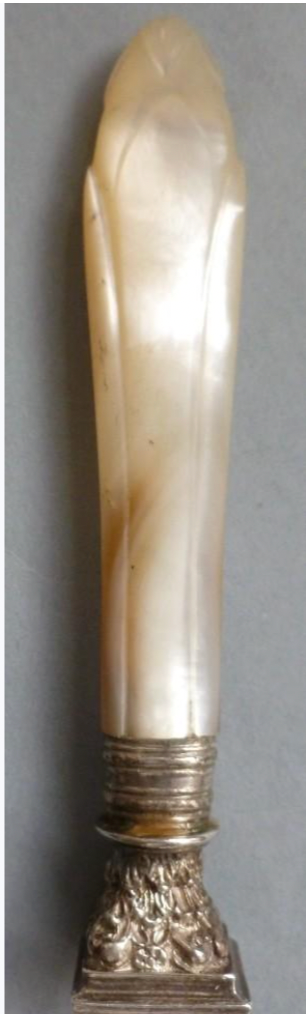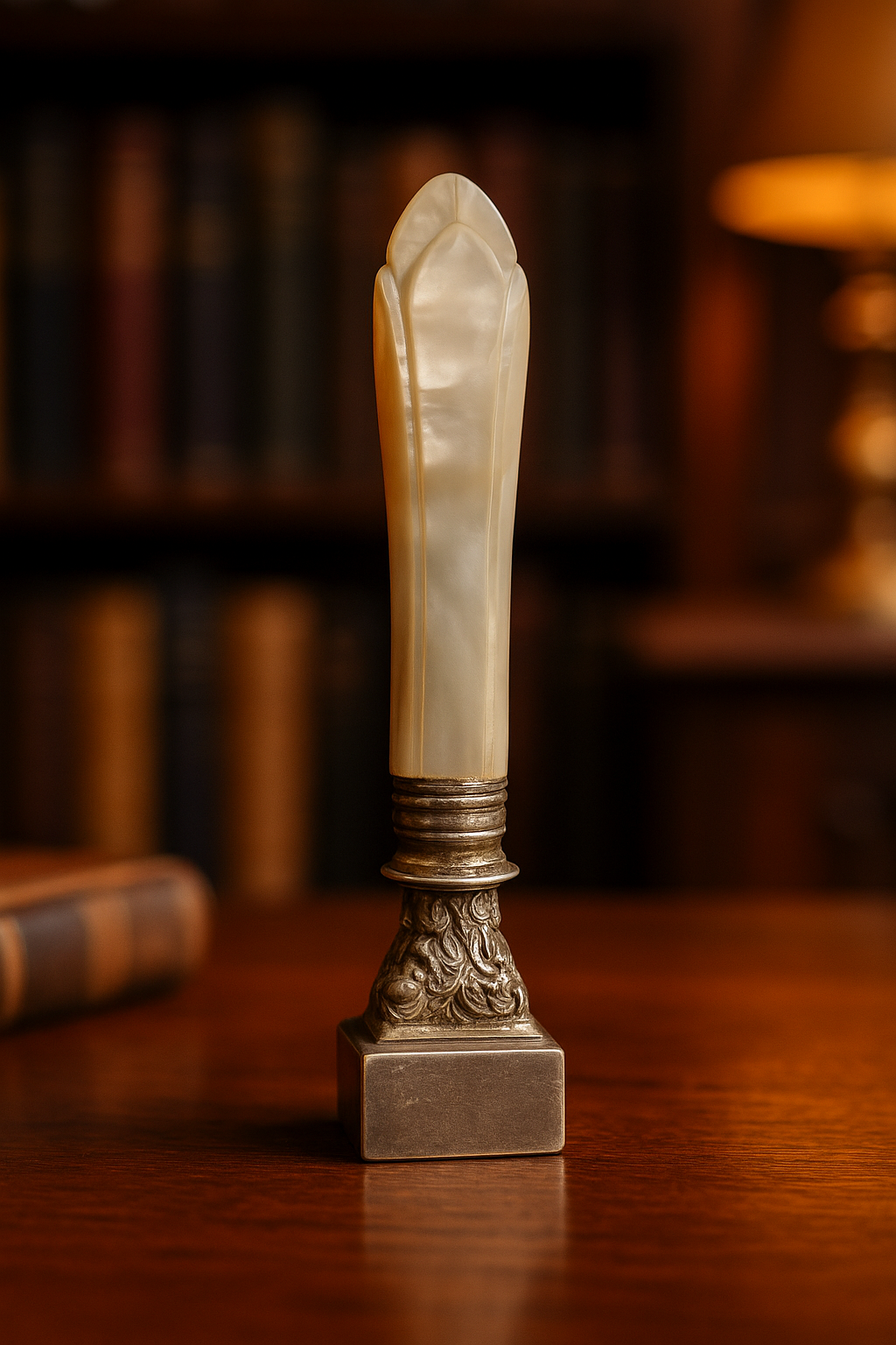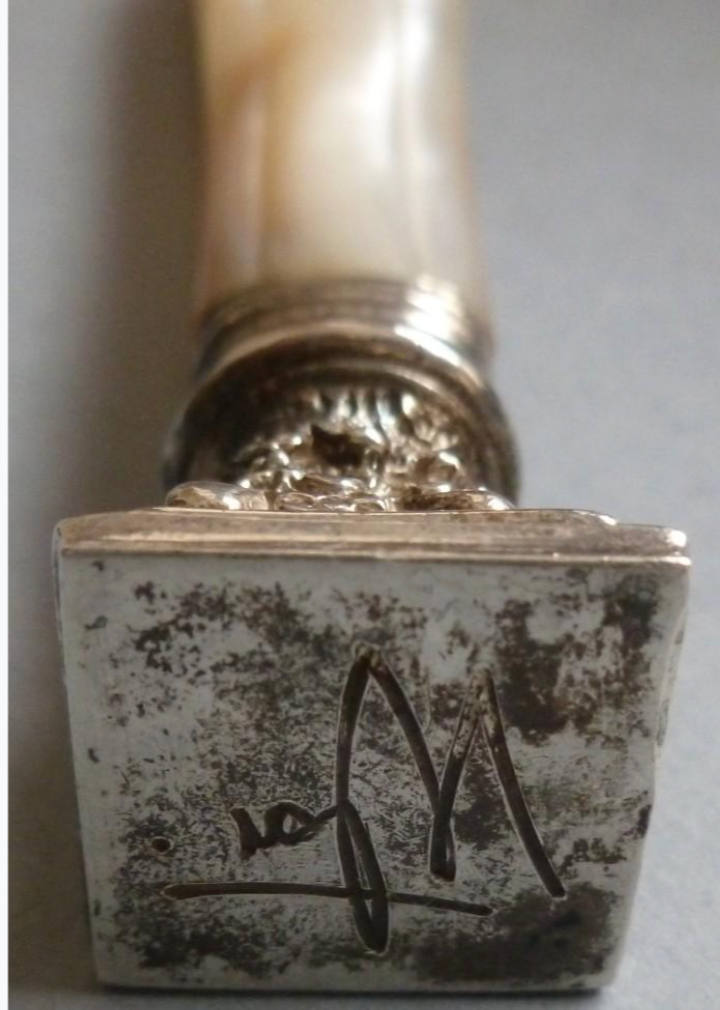 Sello Antiguo con Mango tallado en Nácar (Madre Perla) y Base en Plata
