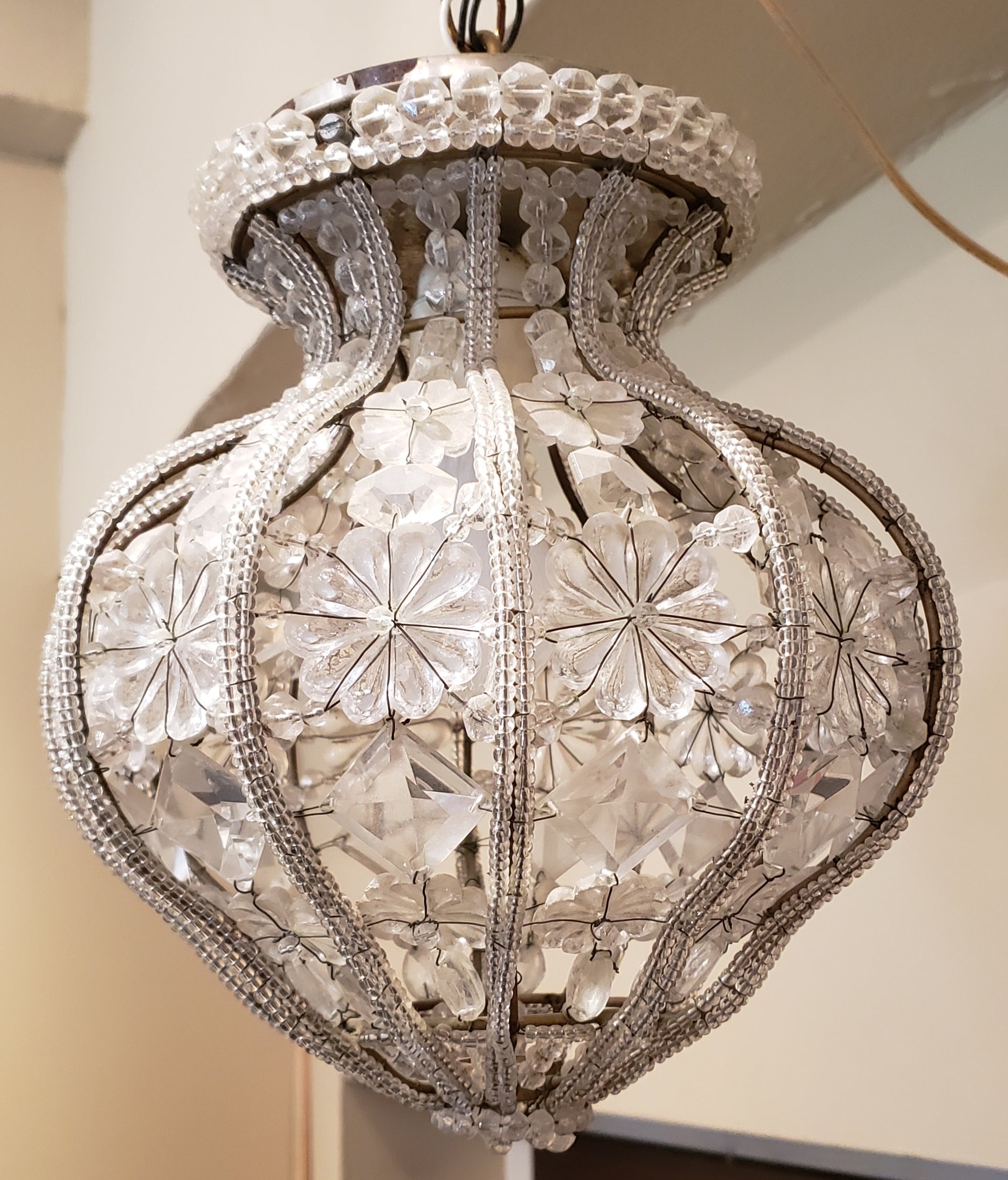 Bead and Crystal light fixture. 11 1/2" (29 cm) H x 9 1/4" (24 cm) diameter.