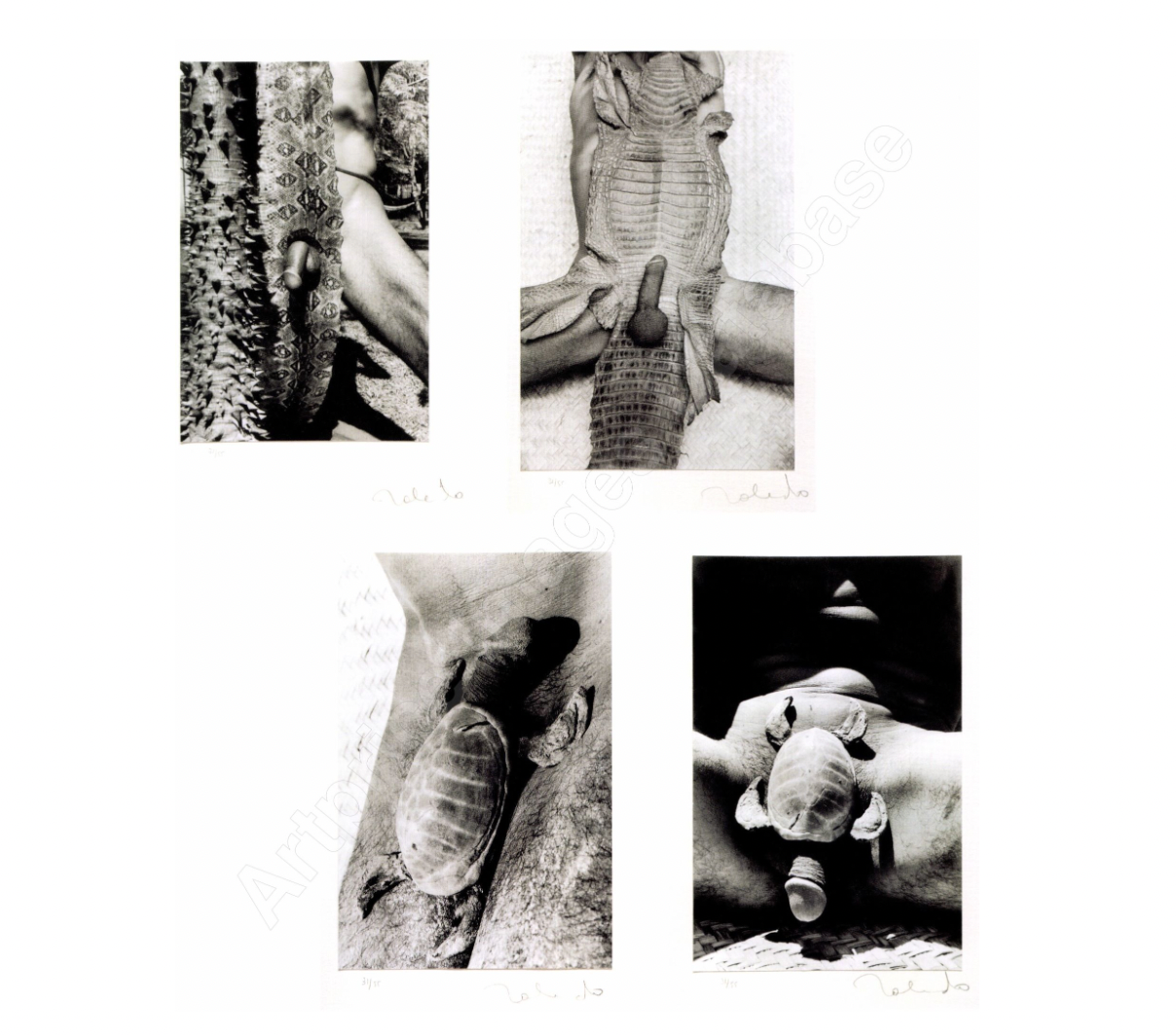 Portfolio comprised of four (4) gelatin silver prints each tipped to rag paper folio with printed text and signed 'Toledo' (lower right) and numbered '15/55' (lower left) in pencil, housed in paper folio with linen covered slip case.