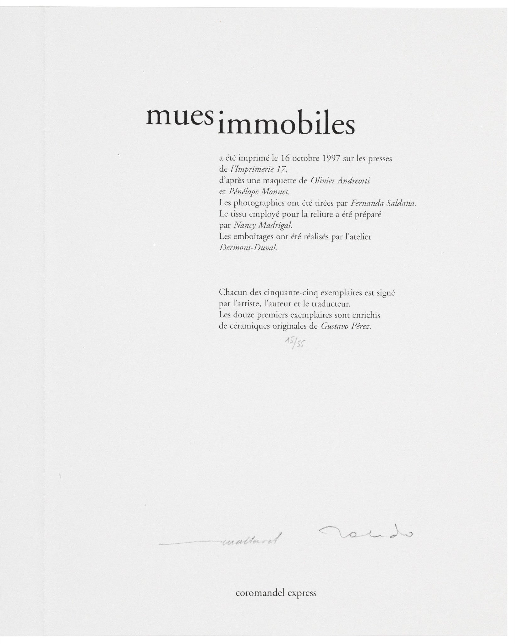Toledo, Francisco; "Mues Immobiles" Fotografías