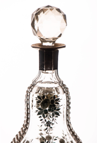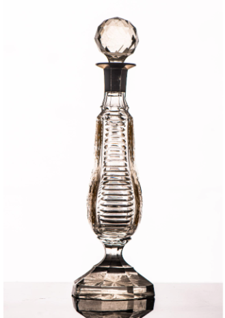 Licorera antigua de vidrio tallado con detalles dorados